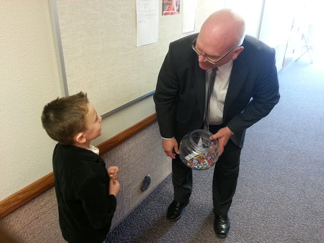 After church the Bishop usually hands out candy outside his office, so there is usually a line of children along the wall right after sunday school classes let out.
